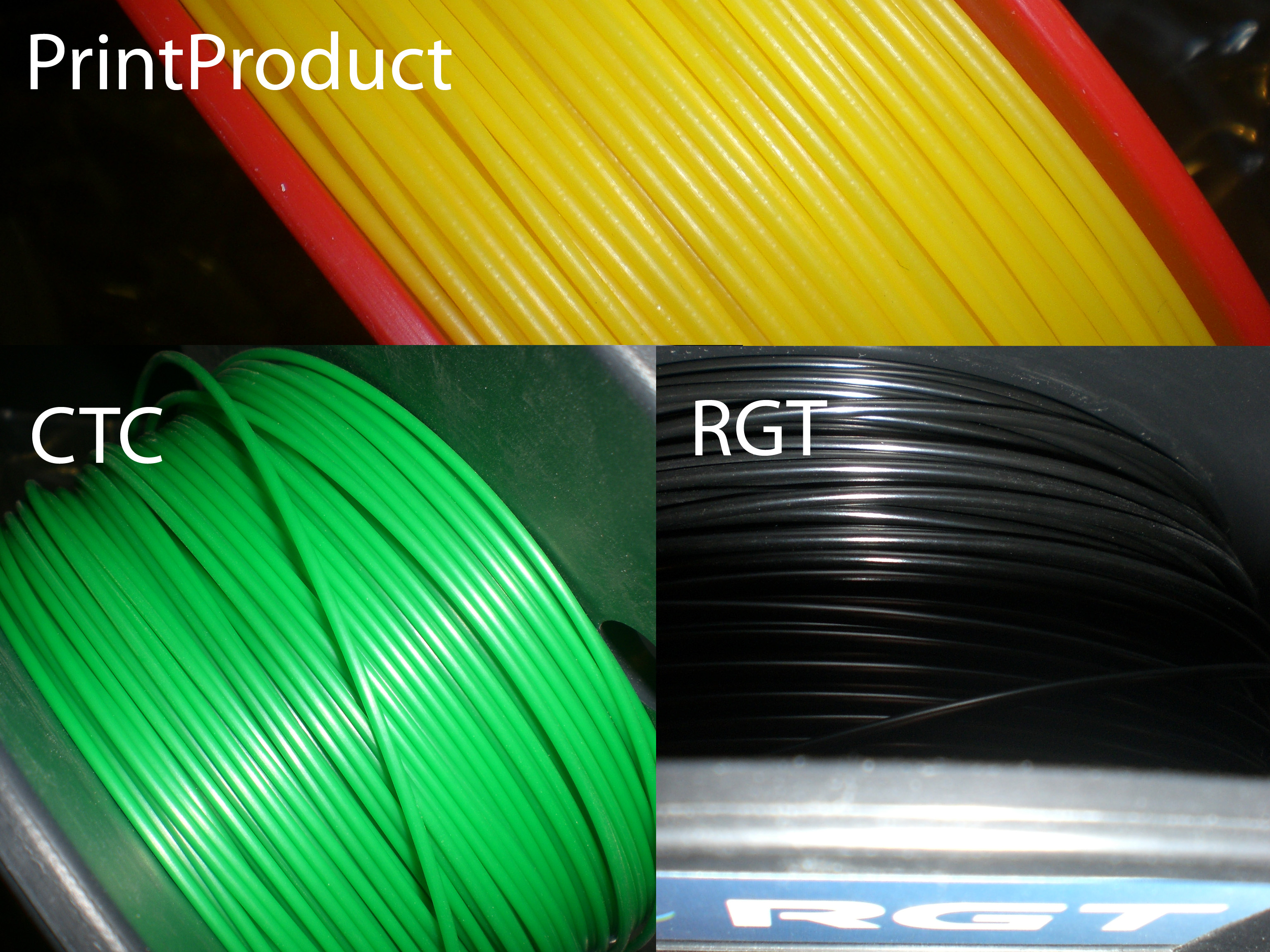 Сама пластиковая нить имеет матовую поверхность, на которой видны микроуглубления, что не очень радует. Это может не лучшим образом сказаться на печати. Образцы пластика других производителей — китайский СТС и RGT имеют гладкую поверхность.