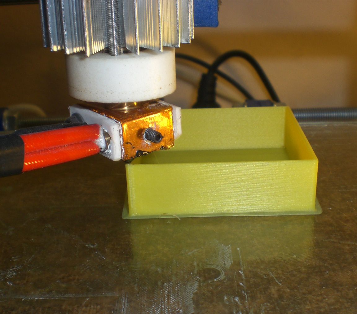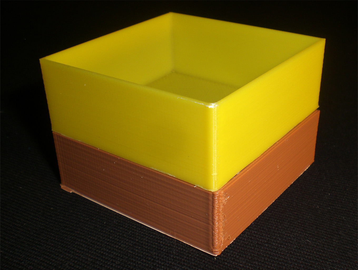 В сравнении с дешевым пластиком (коричневый), видны ровные стенки, нет расплавленного угла в месте перехода сопла на новый слой.