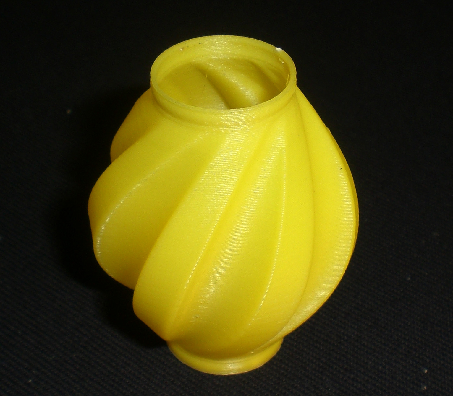 Слой 0.2, сопло 0.5, 250ºC, стол 100ºC , скорость печати 40 мм/сек. Режим печати — спиральный. С обдувом.