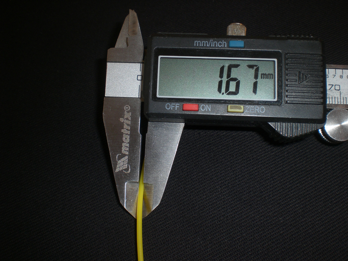 Диаметр нити был измерен 3 раза через промежутки в 1 м. Измерения проводились цифровым штангенциркулем. Результат отличный — 1.66 — 1.67 мм. По нашему опыту, именно постоянный диаметр нити может обеспечить достойную печать. Если диаметр будет гулять, то на тонком слое 0.1 — 0.05 мм это выразится в неровной стенке у изделия.