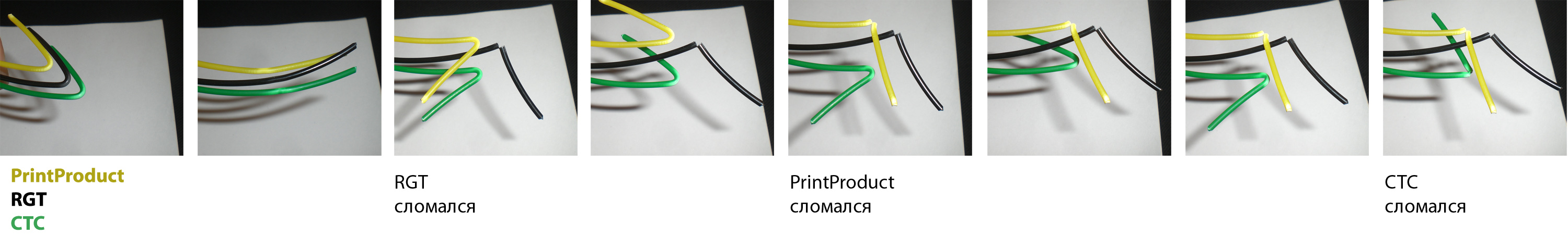 RGT сломался почти сразу — на 2-м перегибе, что странно. Скорее всего, это произошло из-за того, что у нас он долго хранился без упаковки и впитал много влаги.